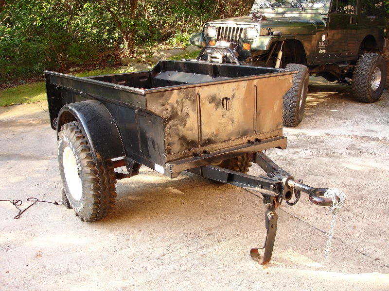 Ken, do you have more pics of it? I'd be curious as to whether the wheel lug pattern matches the Jeep (5x4.5). Tire wheel size? Does it come with the pintle hitch for the Jeep too? Did you do the painting or was this how you got it? That front panel looks either beat up or rusted/repainted, so was curious as to whether that was an issue.